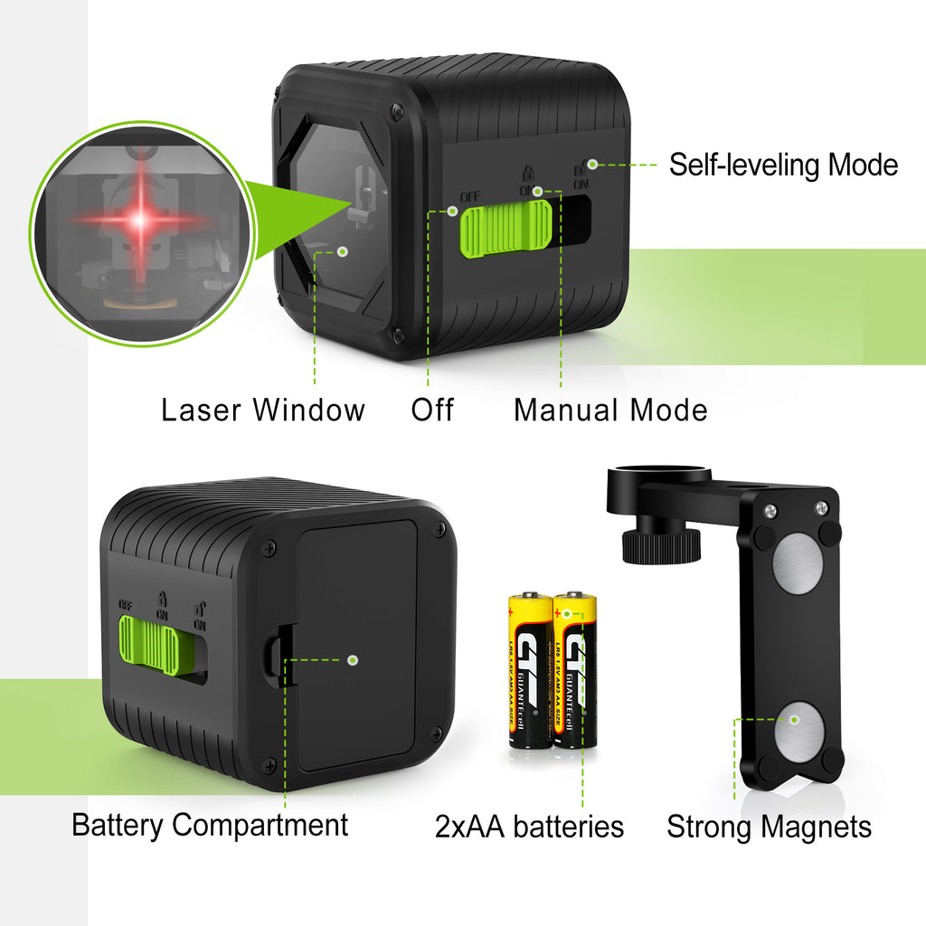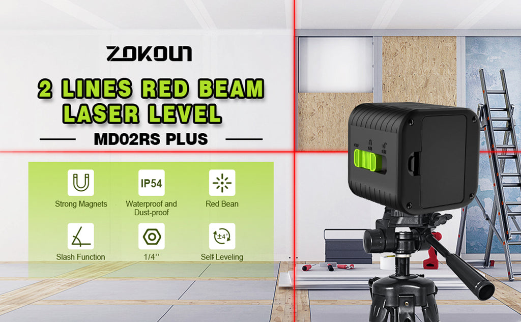 Zokoun Red beam Laser Level, Cross Line Laser with Magnetic Bracket, Self-Leveling Vertical and Horizontal Line, Rotatable 360 Degree, NOT recommended for outdoor use(MD02RS PLUS-Red)