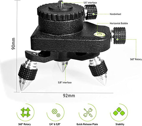 ZOKOUN 360 Adjustment Metal Rotation Tripod Bracket Base Pedestal For 5/8" Interface Laser Level For Self Leveling Adjust Height