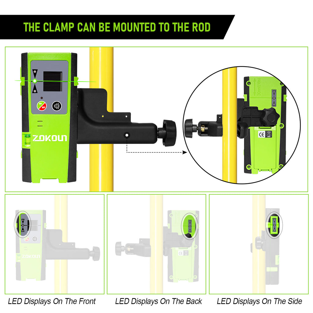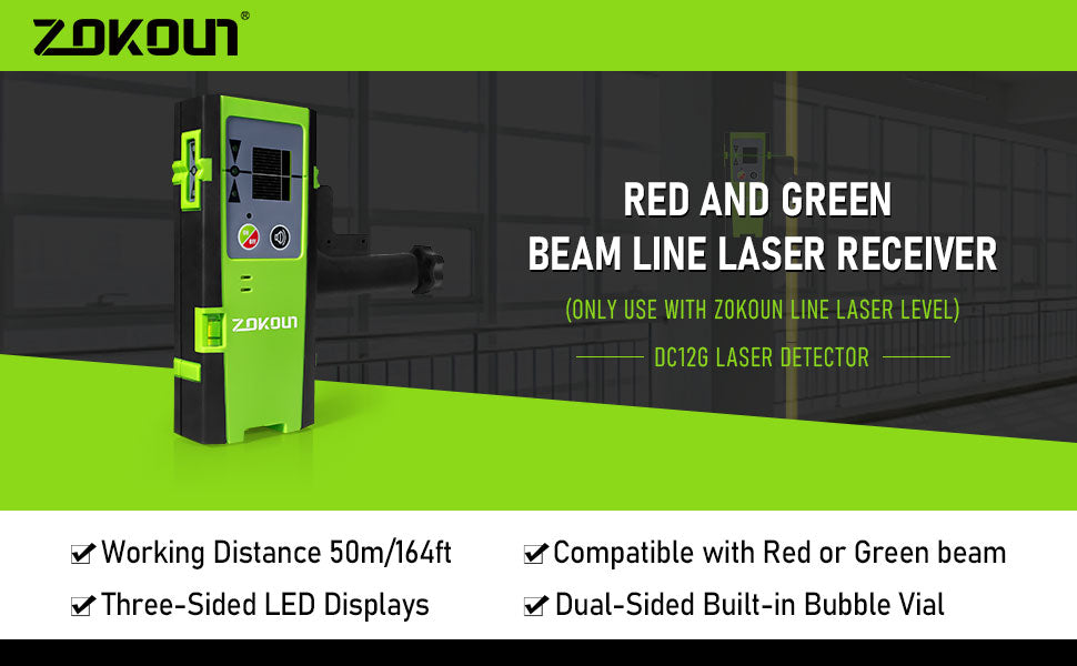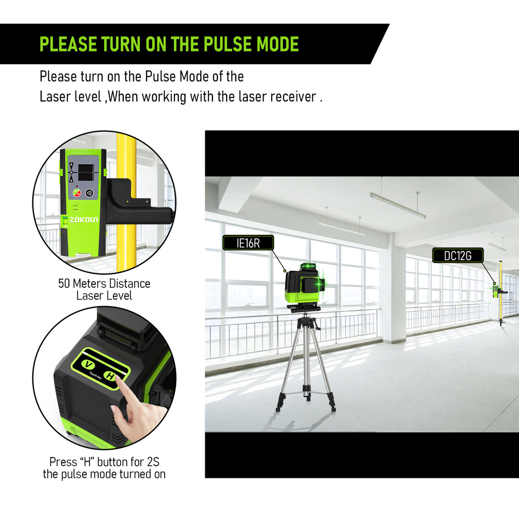 Zokoun DC12G laser receiver ONLY use with Zokoun Line Laser Level(AK1CG/AK2CG/AK360G, IE12/IE16/IE16R, 93T/GF120),50m/164ft (Turn on) Outdoor Pulse Mode