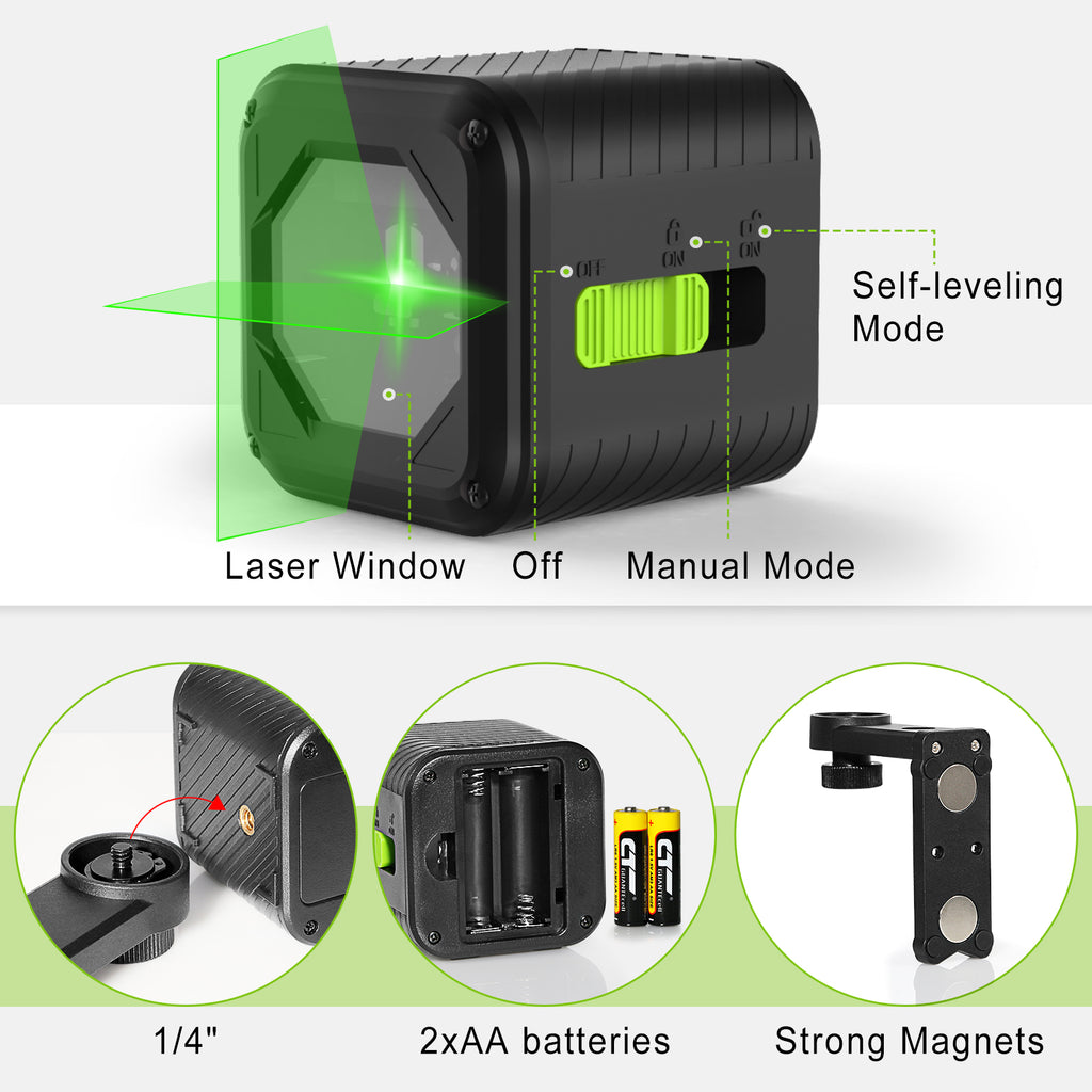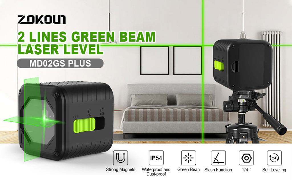Zokoun Green beam Laser Level, Cross Line Laser with Magnetic Bracket, Self-Leveling Vertical and Horizontal Line, Rotatable 360 Degree, NOT recommended for outdoor use(MD02GS PLUS-Green)